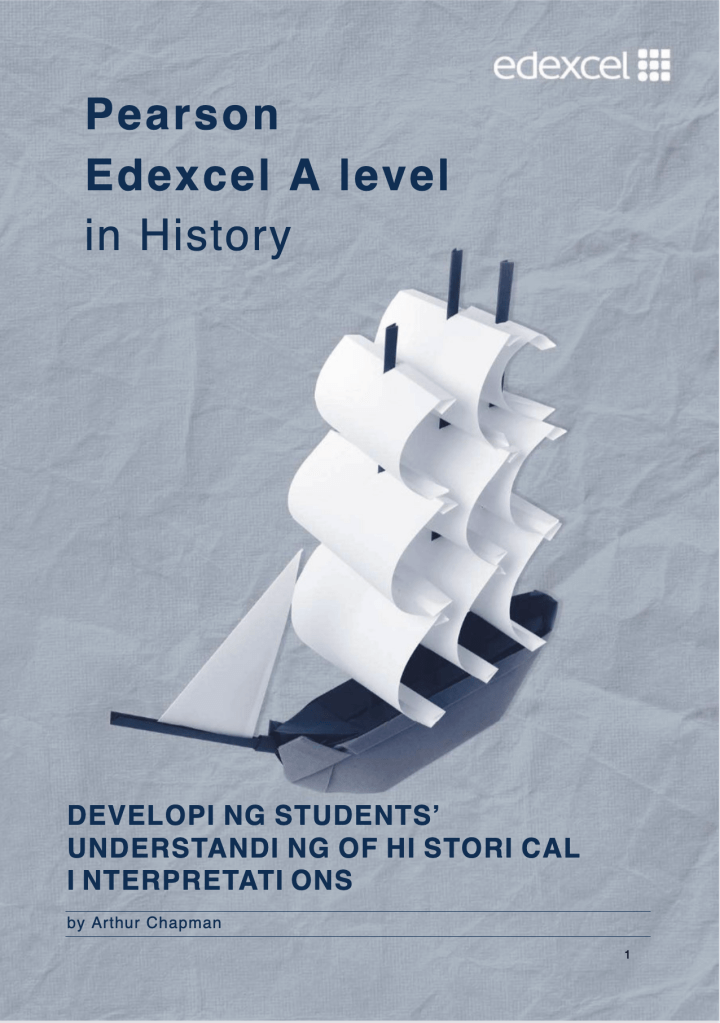 I did a lot of work with Pearson in 2014-16, focused on Advanced Level History (students aged 16-19 years). Initially, this work focused around textbooks and included the development of a historical thinking conceptual progression map, looking at second-order misconceptions in history, and in work on the new series of A Level textbooks that Pearson published in 2015, for which I provided a general introduction. A second strand of work focused on developing advice on teaching and learning about ‘historical interpretations’ (roughly speaking historiography, or understanding of the fact that histories are plural and often multiple and competing). The full version of Developing Students’ Understanding of Historical Interpretation was published online in 2016 and is available here on my academia.edu site. The full version does not represent Pearson’s examination board advice for candidates or teachers. A shorter abridged version is available on the Pearson A Level history website.