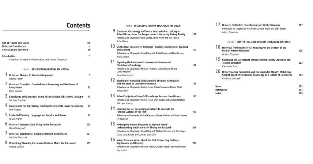 For me, this book project provides strong demonstration of the truth that, like all history-making, history educating is in history, and is bound-up with events and developments shaping the contexts in which it takes place.
